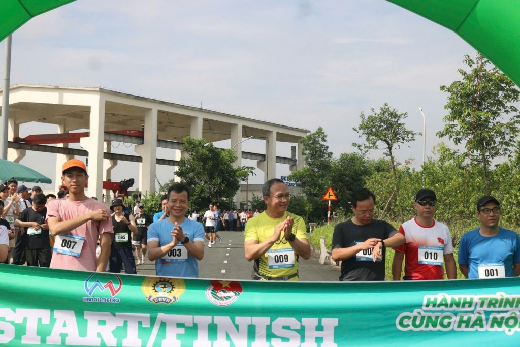 Ngay từ 7h30 sáng, đại gia đình Hà Nội Metro đã cùng nhau “xỏ giày, lên dây cót tinh thần” và sẵn sàng cho những bước chạy mang thông điệp “Hành trình xanh cùng Hà Nội Metro”