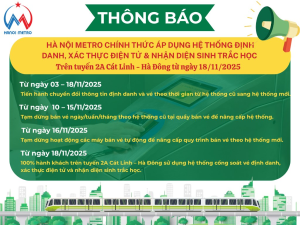 Hà Nội Metro trân trọng thông báo: từ ngày 03/11 đến 18/11/2025 sẽ tiến hành chuyển đổi toàn bộ Hệ thống thu soát vé tự động AFC (sau đây gọi là Hệ thống cũ) trên tuyến 2A Cát Linh – Hà Đông sang Hệ thống mới nâng cấp triển khai giải pháp ứng dụng định … Continue reading HÀ NỘI METRO CHÍNH THỨC ÁP DỤNG HỆ THỐNG ĐỊNH DANH, XÁC THỰC ĐIỆN TỬ & NHẬN DIỆN SINH TRẮC HỌC TRÊN TUYẾN 2A CÁT LINH – HÀ ĐÔNG TỪ NGÀY 18/11/2025