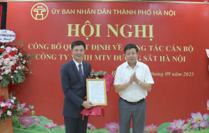 Chiều ngày 23/9/2025, Ủy ban nhân dân Thành phố Hà Nội, Sở Nội vụ đã long trọng tổ chức Hội nghị công bố Quyết định về công tác cán bộ, bổ nhiệm đồng chí Lê Bằng An giữ chức vụ Thành viên Hội đồng thành viên, Tổng Giám đốc Công ty TNHH MTV Đường sắt … Continue reading HỘI NGHỊ CÔNG BỐ QUYẾT ĐỊNH VỀ CÔNG TÁC CÁN BỘ – CÔNG TY TNHH MTV ĐƯỜNG SẮT HÀ NỘI